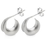 Als je deze geborstelde 925 zilveren hoepeloorbellen benadert met de ogen van een wiskundige, kom je misschien nogal droge termen tegen als "anticlastische kromming" of "concaaf spiraalvormig lichaam". Wie er meer emotioneel naar kijkt, herkent misschien een organische look die speelt met het idee van beweging en stroming. De hoepeloorbellen zijn altijd mooi om naar te kijken - en tegelijkertijd eigentijds en tijdloos. Ze kunnen dan ook gecombineerd worden met zowel casual als elegante outfits.